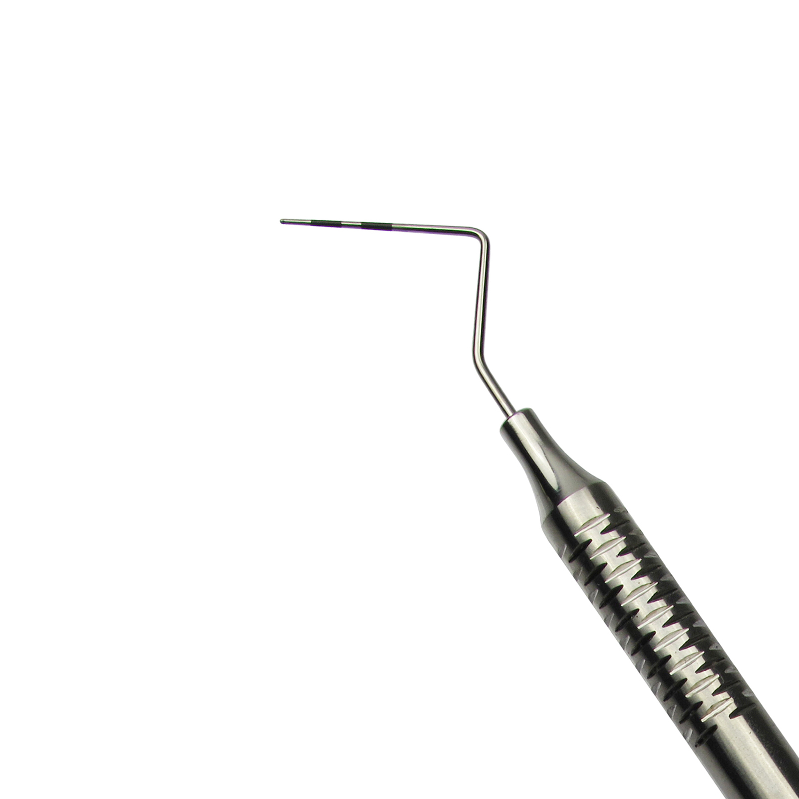 Millimeter markings, the working end of the probe is marked at mm intervals, grooves, colored notches or colored bands can be used to measure pocket depths around a tooth to establish the health status of the periodontium.
